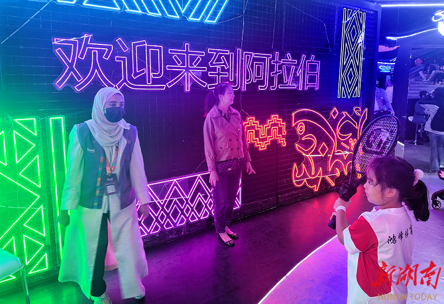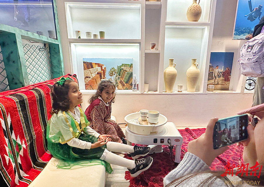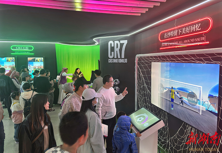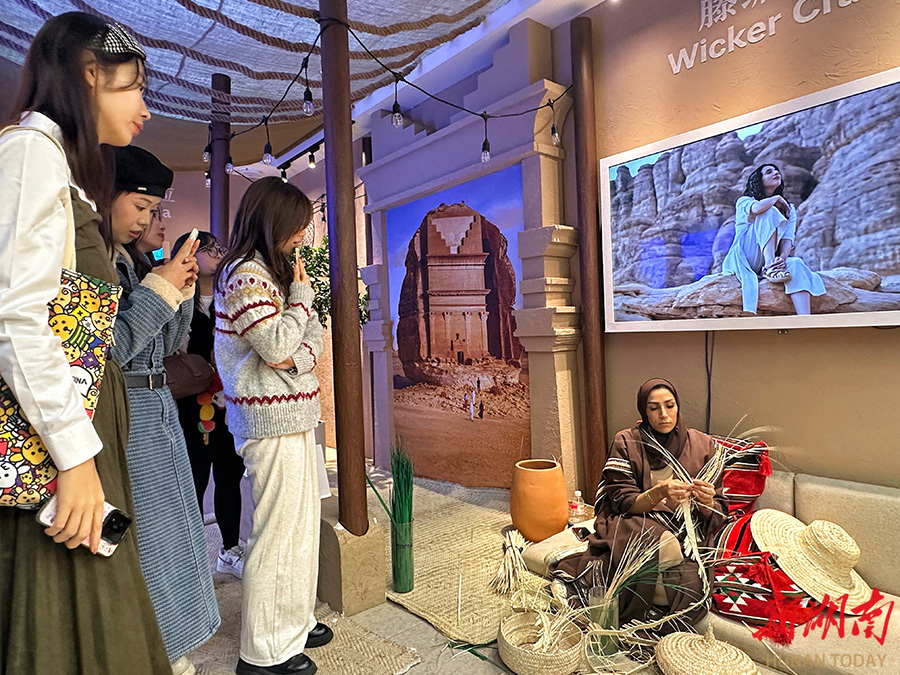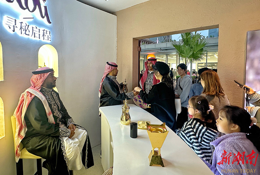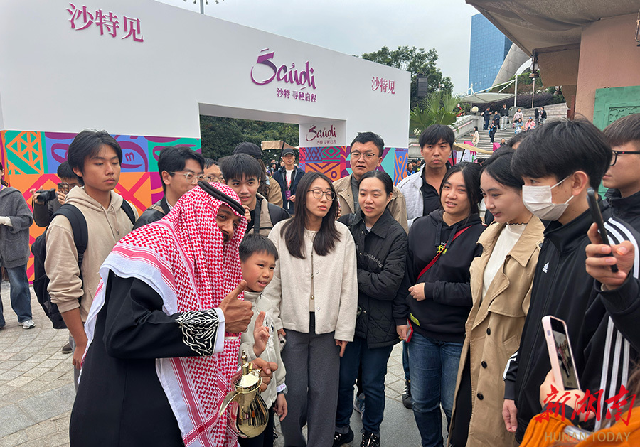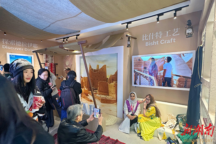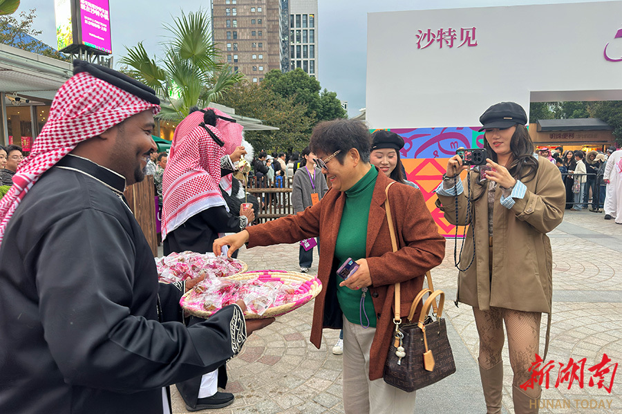 11月9日,游客免费在“沙特小镇”参观体验。11月8日至15日,沙特阿拉伯旅游局在上海东方明珠塔下打造“沙特小镇”,为公众带来为期8天的文化体验。展区占地超1000平方米,涵盖歌舞、美食等多元内容,让参观者近距离感受沙特传统与现代交融的魅力。 湖南日报全媒体记者 徐行 摄